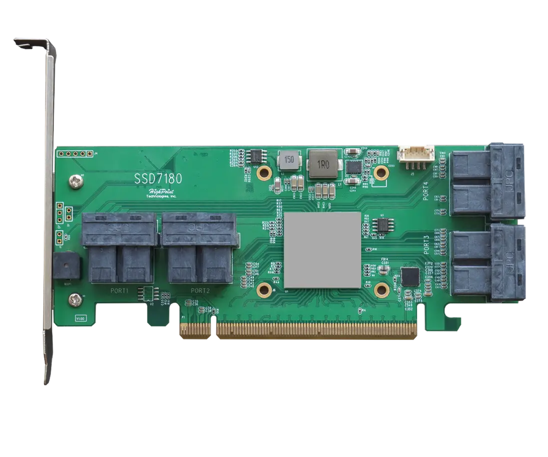 HighPoint SSD718x Series high port count (HPC) NVMe RAID controllers are ideal for professional applications that require a small-footprint, mass-storage NVMe solution that can take full advantage of the PCIe 3.0 x16 transfer bandwidth.