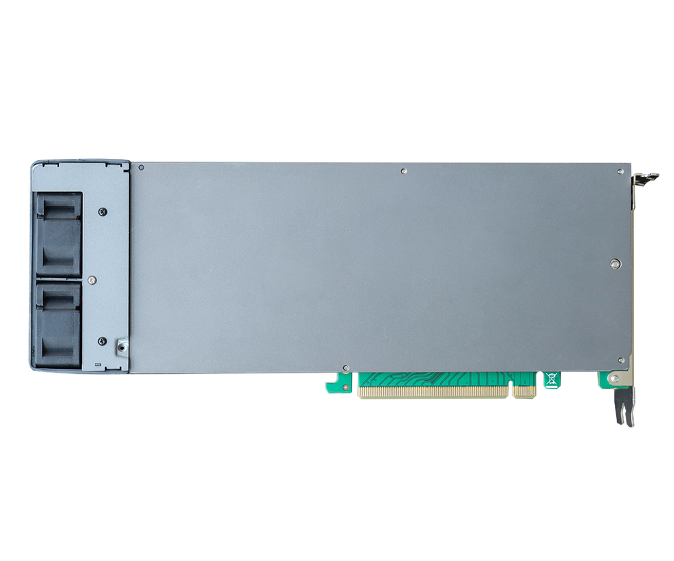The SSD7749E is a simple, cost-efficient PCIe Gen4 RAID storage upgrade solution for Intel and AMD x86 server platforms. The controller can directly host up to eight 9.5mm E1.S SSDs at speeds up to 28,000MB/s, yet is no larger than a modern dual-width PCIe graphics adapter, and can be easily integrated into systems with a free PCIe 4.0 x16 slot.