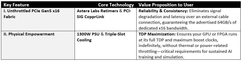 Integrated 1300W PSU addresses the real-world power demands of high-end Accelerator cards, I/O devices and GPUs