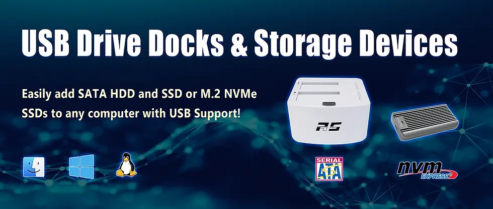 RocketStor Series USB Drive Docks & RAID Enclosures: HighPoint manufactures a selection of single, dual and quad- bay external USB storage solutions for PC and Mac platforms, equally suited for personal or professional applications that require quick, simple docking device, or a robust and reliable external storage solution with integrated RAID 0, 1 and 5 capability.